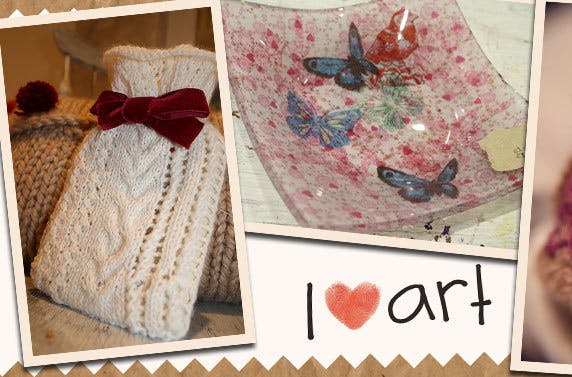 £7 instead of £14 for a 2 hour glass decoupage craft session, £9 instead of £20 for a 2 hour introduction to crochet or knitting or £14 instead of £30 to ‘drop in’ & decorate your own decoupage stag’s head at I Heart Art – save up to 55%