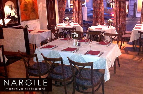 £14 instead of £29 for a Vezir Sofrasi Banquet lunch for two including a selection of hot and cold meze at Nargile Mezeriye Restaurant on Skene Street in the city centre – save 52%