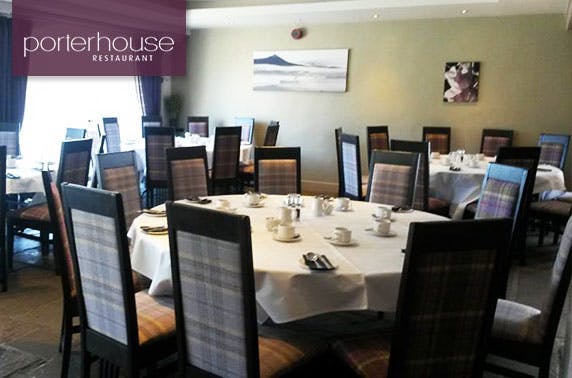 £28 instead of £56 for a two course dinner for two choosing any starter and main from the Signature Dishes menu plus a glass of wine or bottle of beer each at Porterhouse Restaurant, Inverurie - save 50%
