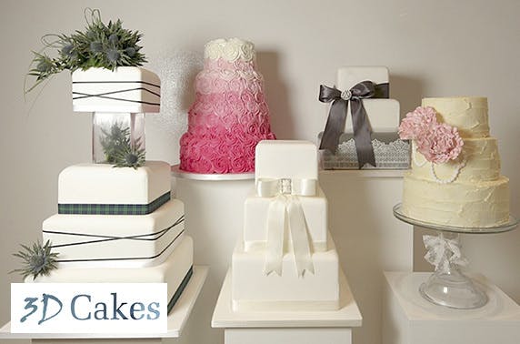 £129 instead of £425 for a 3 tier wedding cake or £169 instead of £510 for a 4 tier cake from multi award-winning 3D Cakes (choice of 5 designs shown) collect from Edinburgh or Glasgow, delivery available within Scotland (charges apply) – save up to 70%