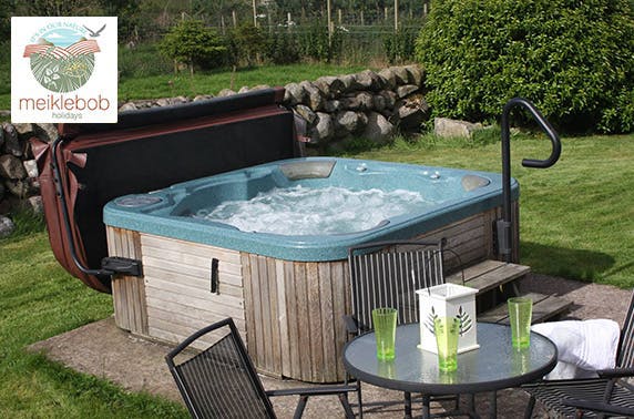 From £189 instead of up to £360 for a 2 night stay or from £269 instead of up to £540 for 3 nights for four or six at Meiklebob Cottages in Dumfries and Galloway; cottage with private hot tub and BBQ
