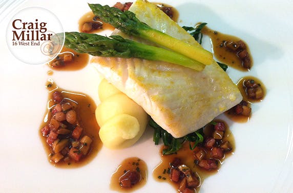 £20 instead of £44 for a decadent 2-course lunch for two or £53 instead of £120 for a 5-course tasting dinner at the award-winning Craig Millar @ 16 West End – save up to 56%