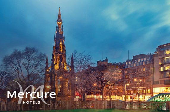 Overnight stay for two with a bottle of wine, breakfast and optional dinner at Mercure Edinburgh Princes Street; enjoy panoramic views of Edinburgh Castle & more – save up to 50%