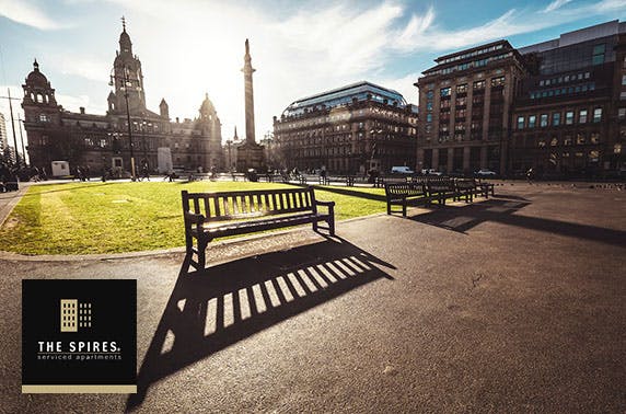 Overnight stay for two or four or six with breakfast and late check-out at The Spires Serviced Apartments in Glasgow’s Merchant City; perfect central location from under £25pp and valid until December - save up to 59%