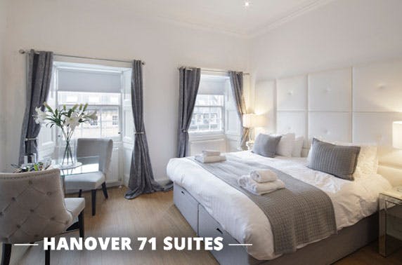 Overnight stay for two with late check-out in a junior or standard suite or upgrade to a Queen suite at Hanover 71 Suites, Edinburgh City Centre; excellent location just off George Street and short walk from Princes Street - save up to 50%
