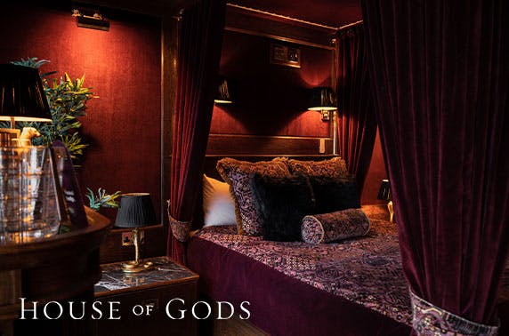 Overnight stay for two in a cabin, classic room or luxury suite with drinks at newly-opened House of Gods, City Centre; boutique hotel and cocktail bar just off the Royal Mile - save up to 50%