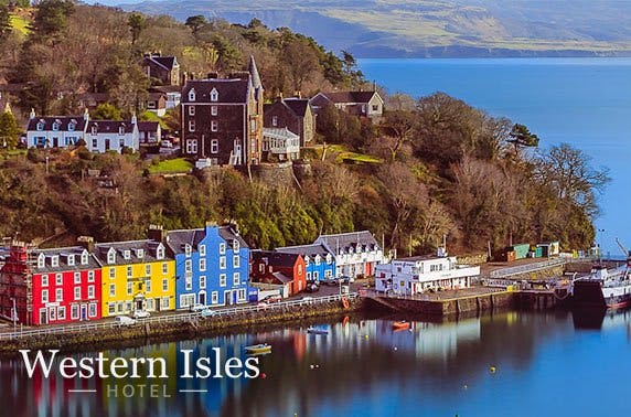 1 or 2 night stay for two at The Western Isles Hotel, Mull; includes a bottle of Prosecco on arrival, breakfast and an optional £25pp dinner allocation; with stunning sea views over Tobermory harbour and valid 7 days - save up to 63%