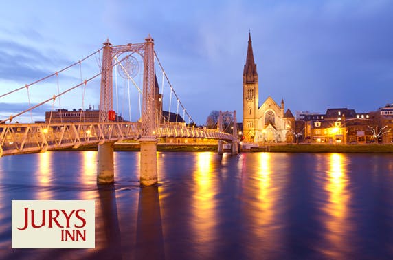 £54 instead of £111 for an overnight stay for two with breakfast plus early check-in and late check-out or £99 instead of £202 for a 2 night stay at Jurys Inn Inverness – save up to 51%