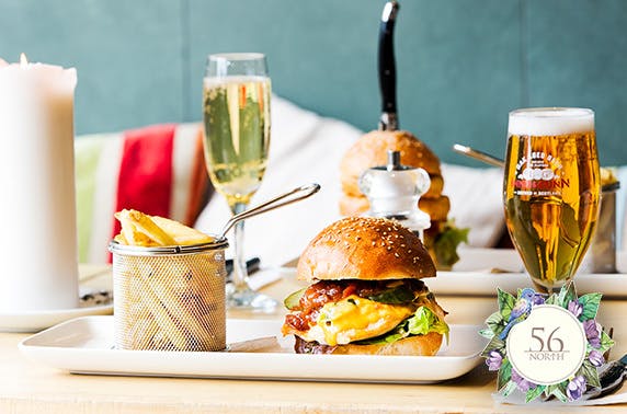 £16 instead of up to £36 for gourmet burgers and fries for two plus a cocktail or beer each or £29 instead of up to £72 for four at 56 North – save up to 60%