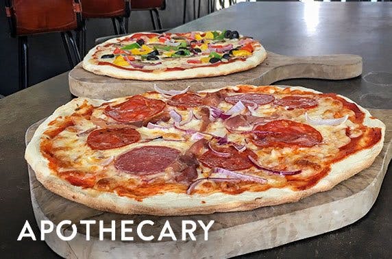 Pizza & drinks for two or four at Apothecary, Lister Square; features an onsite brewery and distillery! - save up to 58%