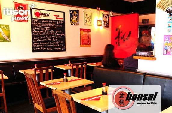 £9 for £20 worth of authentic Japanese food at Bonsai Bar Bistro in the heart of the City Centre; choose from an extensive menu including crispy prawn tempura, gyoza parcels, sushi, Japanese salads, teppanyaki and more – save 55%