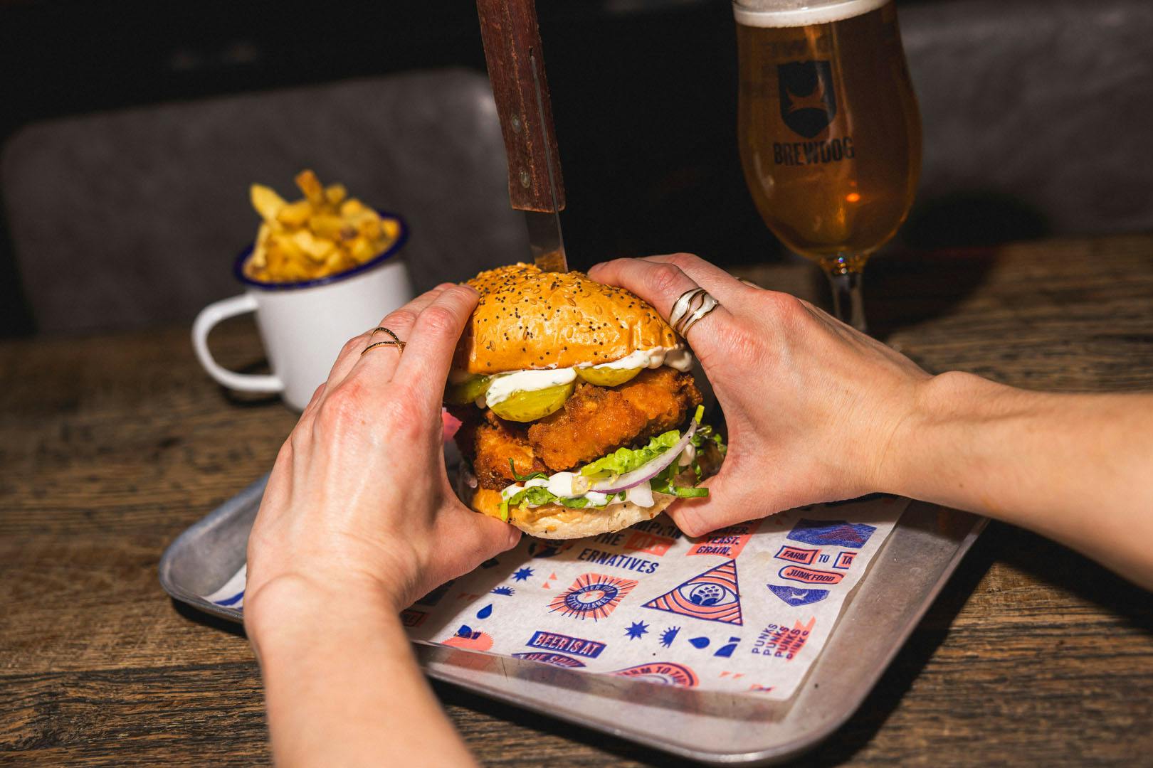 Burger & fries with a schooner of Headliner beer or a bottle of wine at BrewDog Lothian Road; choose from 20 beer lines on tap and a delicious menu inc veggie & vegan options