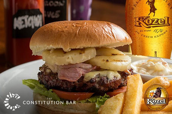 £12 instead of £26 for handmade gourmet burgers and chunky chips for two plus a pint of Kozel beer at Constitution Bar in Leith – save 54%