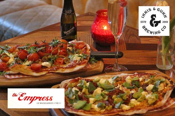 £12 instead of up to £37 for flatbreads for two with a glass of Prosecco, gin cocktail or Innis & Gunn beer each or £23 instead of up to £74 for four at The Empress of Broughton Street, City Centre – save up to 69%