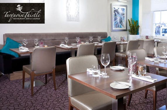 £16 instead of £34 for a two course meal for two at the Turquoise Thistle Restaurant in Hotel Indigo; choose from pan roasted sea bass, Ayrshire pork and more – save 53%