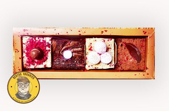 Luxury brownies from Berto's Brownies with optional Biscoff or salted caramel dipping sauce; handmade in Glasgow & available for local collection or delivery across Central Scotland, the Borders & England - the perfect indulgent Valentine's treat!