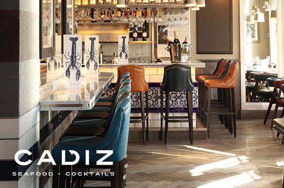 £49 for a 4 course meal for two with a cocktail each plus tea or coffee at Cadiz, George Street; loved by The Scotsman
