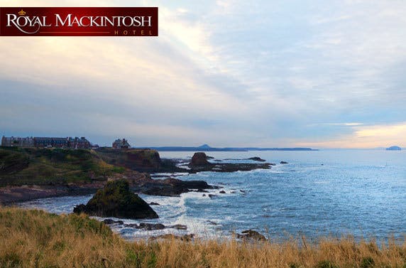 £18 instead of £44 for a two course lunch or dinner for two people plus a glass of wine each at the Royal Mackintosh Hotel in the seaside town of Dunbar, the perfect coastal day out – save 59%