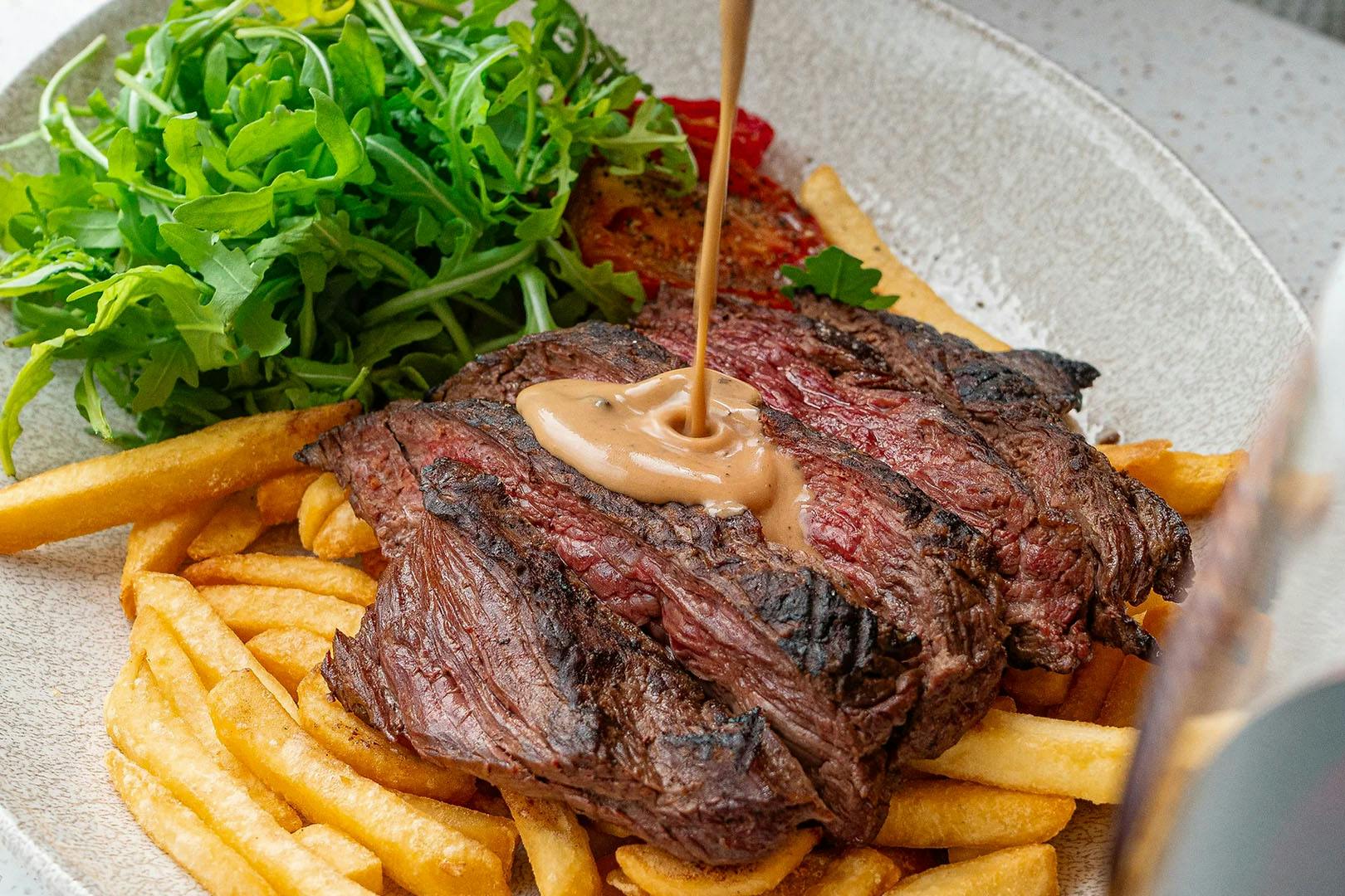 Steak Frites for two with optional Prosecco at West End Brasserie; a chic French-themed restaurant with an air of art deco grandeur in the heart of Edinburgh's lively West End - valid 7 days