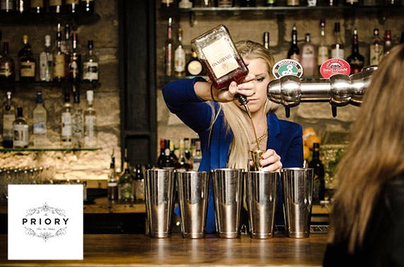 £11 instead of £22 for lunch for 2 inc. a choice of 5 tapas dishes to share plus a glass of wine or bottle of beer each or £19 instead of £38 for dinner for 2 inc. a main course each plus a bottle of wine to share, The Priory Bar & Kitchen- save up to 50%