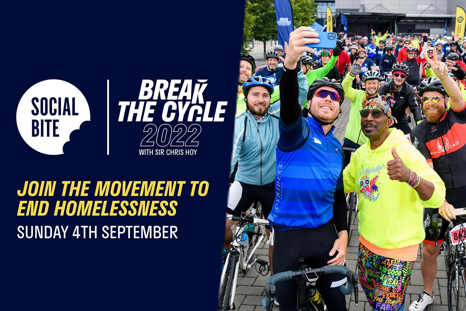 Win a VIP meet & greet with Sir Chris Hoy; donate £5 for entry into the prize draw plus entry into Break the Cycle Event at BT Murrayfield Stadium on Sunday 4th of September featuring Elaine C Smith, Michael Welch & Wukasa; all funds go to Social Bite