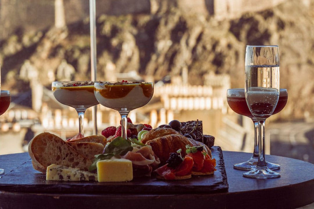Brunch platter for one with cocktails and panoramic views of Edinburgh Castle