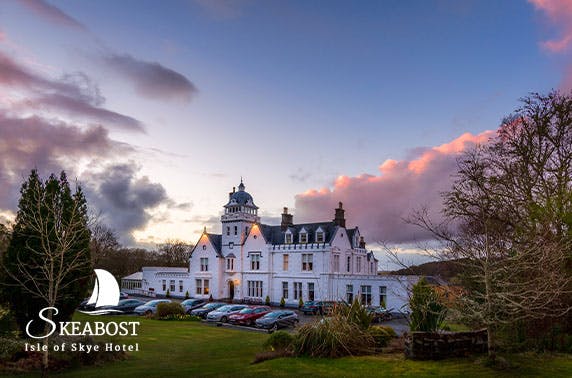 1 or 2 night stay for two with breakfast, a glass of Prosecco, canapés on arrival and late check-out at award-winning 4* Skeabost House Hotel, Isle of Skye; Country Hotel of the Year 2019 – save up to 55%
