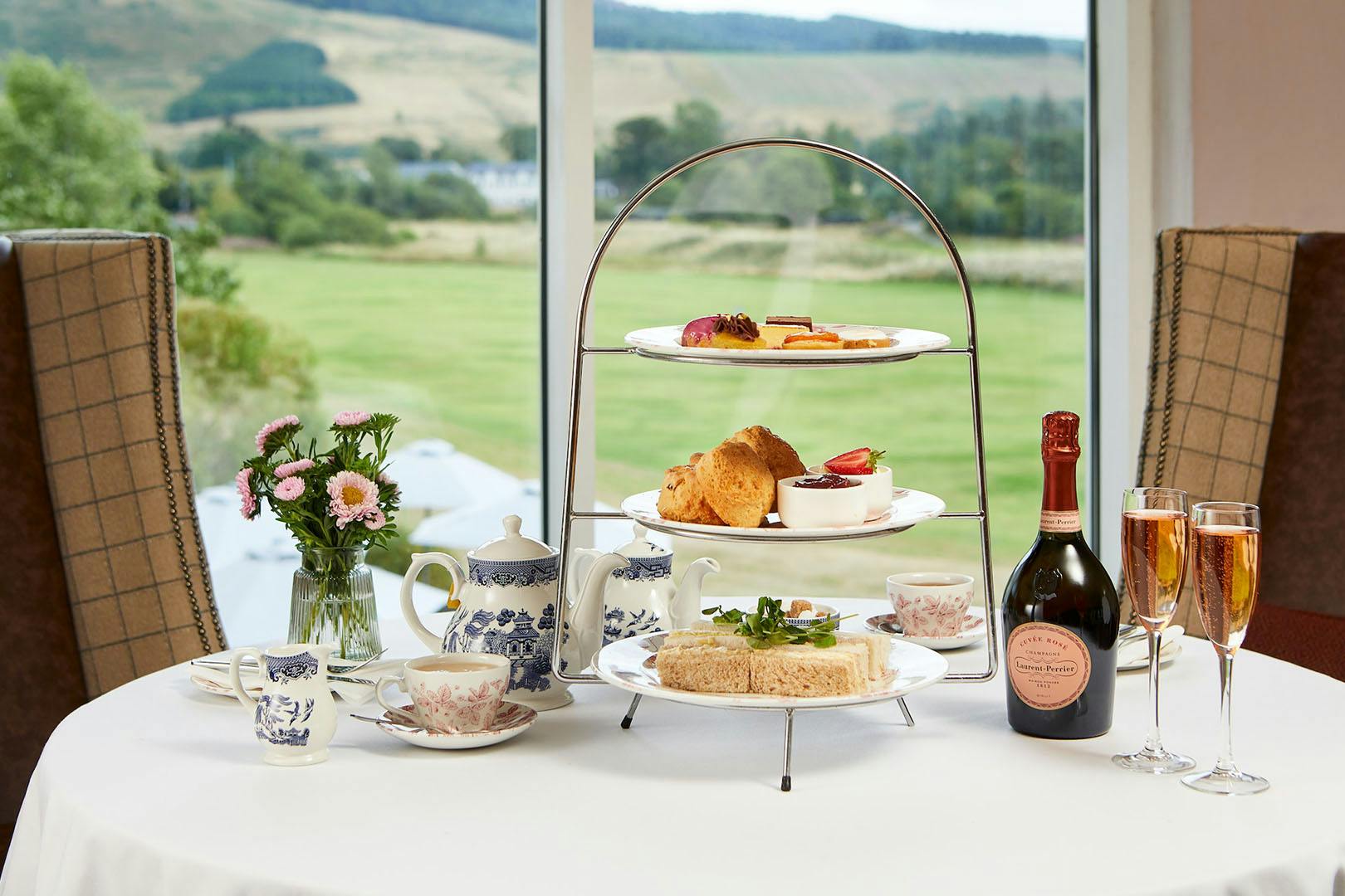 Afternoon tea with optional Prosecco for two at 4* Macdonald Cardrona Hotel; enjoy sweet and savoury delights in a haven of peace and tranquillity overlooking the magnificent Tweed Valley