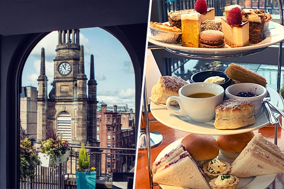 Afternoon tea for two at Windows Restaurant within 4* Carlton George Hotel; enjoy stunning views of the city from Glasgow’s only rooftop restaurant, perfect pit-stop after a spot of shopping on Buchanan Street