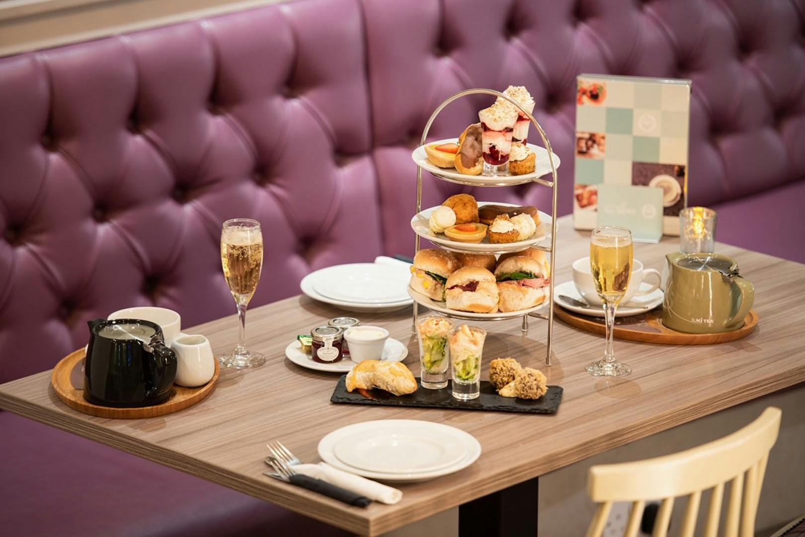 Afternoon tea for two with a glass of Prosecco each