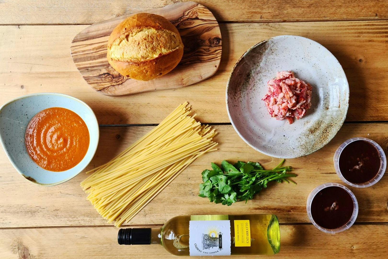 2 course crab linguine and wine box for two