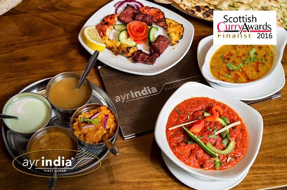 £19 instead of £44 for 2 courses for two plus rice, naan, poppadoms, spicy onions and pickles to share at Ayr India, Alloway Place or Seafield Road; Scottish Curry Awards finalist 2016 – save 57%