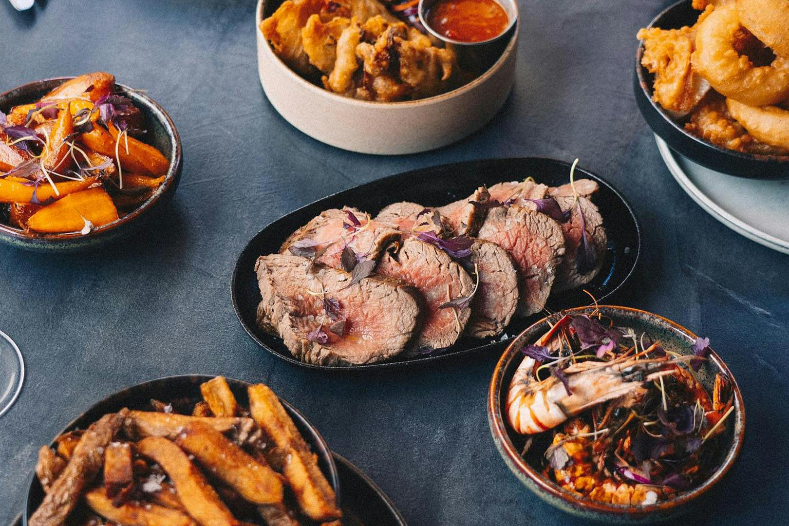 Steak dining with sides and drinks for two at Bar & Tender Woodlands Road; stylish venue serving a menu full of fresh steaks and other handcrafted dishes, perfect for couples, families or friends catching up - from the team behind Mini Grill & Meat Joint