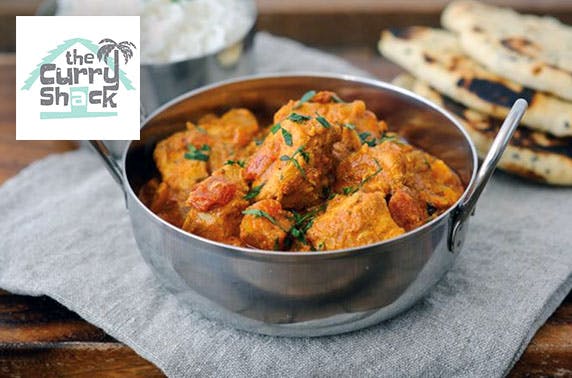 2 course dining for two with an optional glass of wine each at brand new The Curry Shack, Clarkston; enjoy a starter & main each plus a side of rice and naan bread to share - save up to 52%