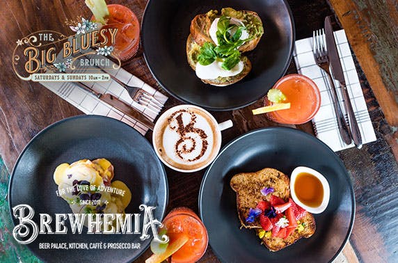 Brunch for two with tea or coffee, orange juice and optional cocktails and bottle of Prosecco at Brewhemia, City Centre; Edinburgh's largest bar with 5 unique areas - save up to 51%