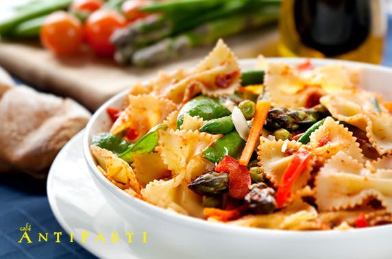 £15 instead of up to £37 for 2 courses for two or £20 instead of up to £54 to include a bottle of wine to share at Café Antipasti, city centre – save up to 63%