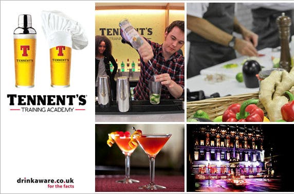 £39 instead of £99 for the ultimate Night Out at the Tennent’s Training Academy including a cookery lesson, cocktail masterclass and cocktail drinking, dinner with wine plus transport and VIP entry to The Corinthian Club – save 61%
