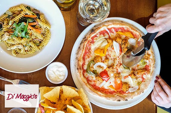Award-winning Di Maggio's takeaway or delivery for two; choose pizza or pasta and a tub of Crolla's ice cream each & a bottle of wine to share and collect from either Shawlands, East Kilbride or Royal Exchange Square restaurants 7 days a week!