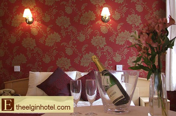 £59 instead of £129 for an overnight stay for two at The Elgin Hotel with breakfast & a bottle of Prosecco or £129 instead of £271 for two nights with breakfast, bottle of Prosecco & chocolates plus an A la Carte main each – save up to 54%