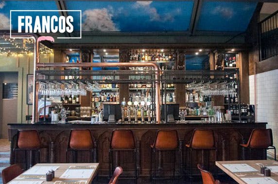 £10 instead of up to £20 for any pizza each for two or £13 instead of £27 to include a bottle of beer or glass of wine at newly-opened Francos, West End – save up to 54%
