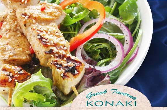 £18 instead of £44 for a feast of seven mouthwatering traditional Greek dishes for TWO including moussaka, pastitio, stifado and more with a glass of wine each at the award winning Konaki Taverna in the City Centre – save 59%