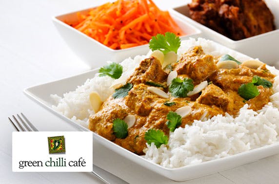£12 instead of up to £38 for 3 course lunch for two or £19 instead of up to £41 for starters, mains, sides and a glass of wine at Green Chilli Café, West End; Scottish Curry Awards 2017 finalist – save up to 68%