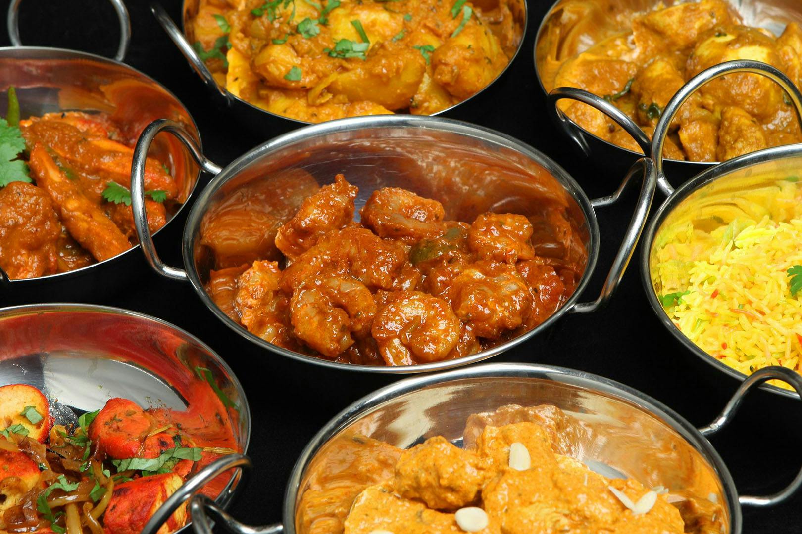 • Includes a side of naan or rice each plus poppadoms and spiced onions to share