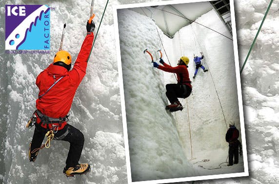 £22 instead of £60 for 90 minutes of ice climbing or rock climbing for two at The Ice Factor, the world’s biggest indoor ice climbing facility - save 63%