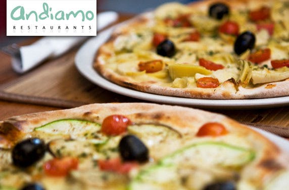 £17 instead of £39 for contemporary Italian cuisine for TWO people at Andiamo in Giffnock, Hamilton or Milngavie including any pizza or pasta each plus two side orders and a glass of house wine or a bottle of Peroni – save 56%