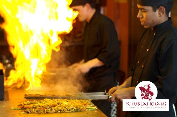 £10 for 2 trips to the BBQ for one at Khublai Khans Mongolian restaurant, Merchant City; create your own customised dishes and watch them being cooked on a huge open grill by chefs using metal swords