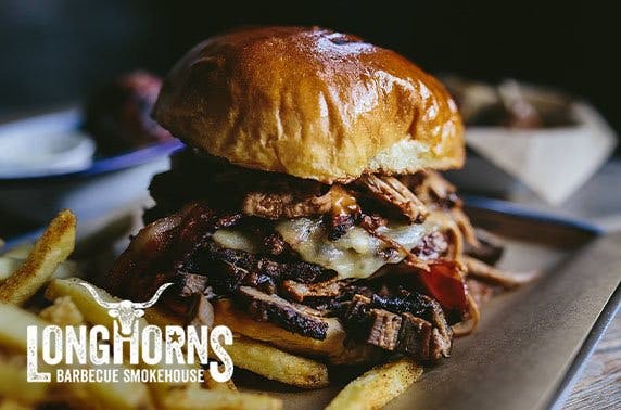 Burgers with fries and slaw for two or four at Longhorns Barbecue Smokehouse; fantastic city centre location - save up to 50%
