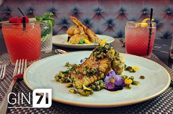 2 or 7 course dinner for two and a gin cocktail each at award-winning Gin 71, Renfield street; named one of the coolest gin bars in Scotland by the Herald on Sunday - save up to 50%