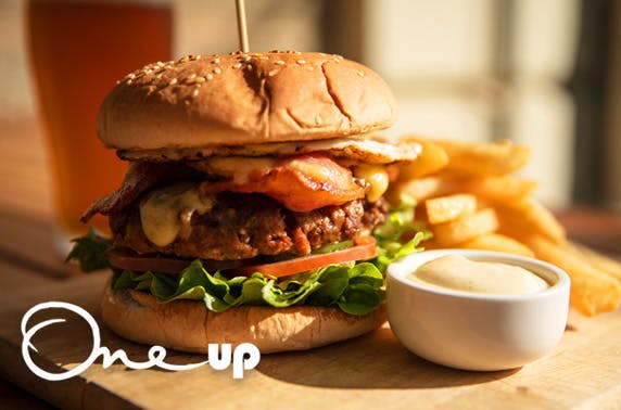 £8 instead of up to £17 for any two burgers served with house fries for two people at One Up on Royal Exchange Square; choose from the newly launched burger menu including chilli beef burger, haggis & black pudding and pulled pork – save 53%