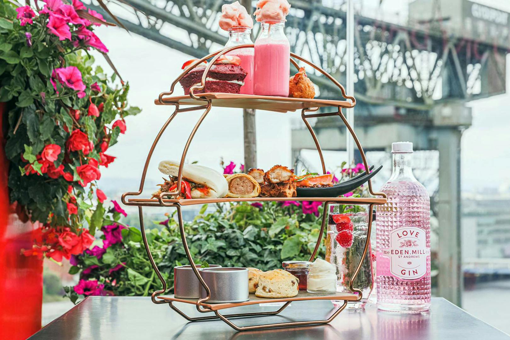 Afternoon tea for two with an Eden Mill Love G&T or St Mungo's beer each at the Red Sky Bar within the award-winning Radisson RED; Glasgow’s highest rooftop bar that boasts panoramic views across the City - great location next to the SEC and Hydro